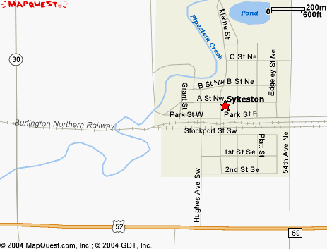This Northern Pacific Railroad townsite was the namesake of promoter Richard Sykes, a wealthy Englishman who founded several towns in the state. Sykeston dates from 1883, although an 1882 map by Wells & Dudley shows "Sykes" at this site in Sec 13-146-69, Sykeston Township. For several years it was the terminus of the NPRR, and was the county seat until 1894. The post office was established October 11, 1883 with Harry L. Durbrow, Postmaster. The village incorporated in 1905, and it became a city in 1925 with O.J. Lunby (1885-1950) as mayor.